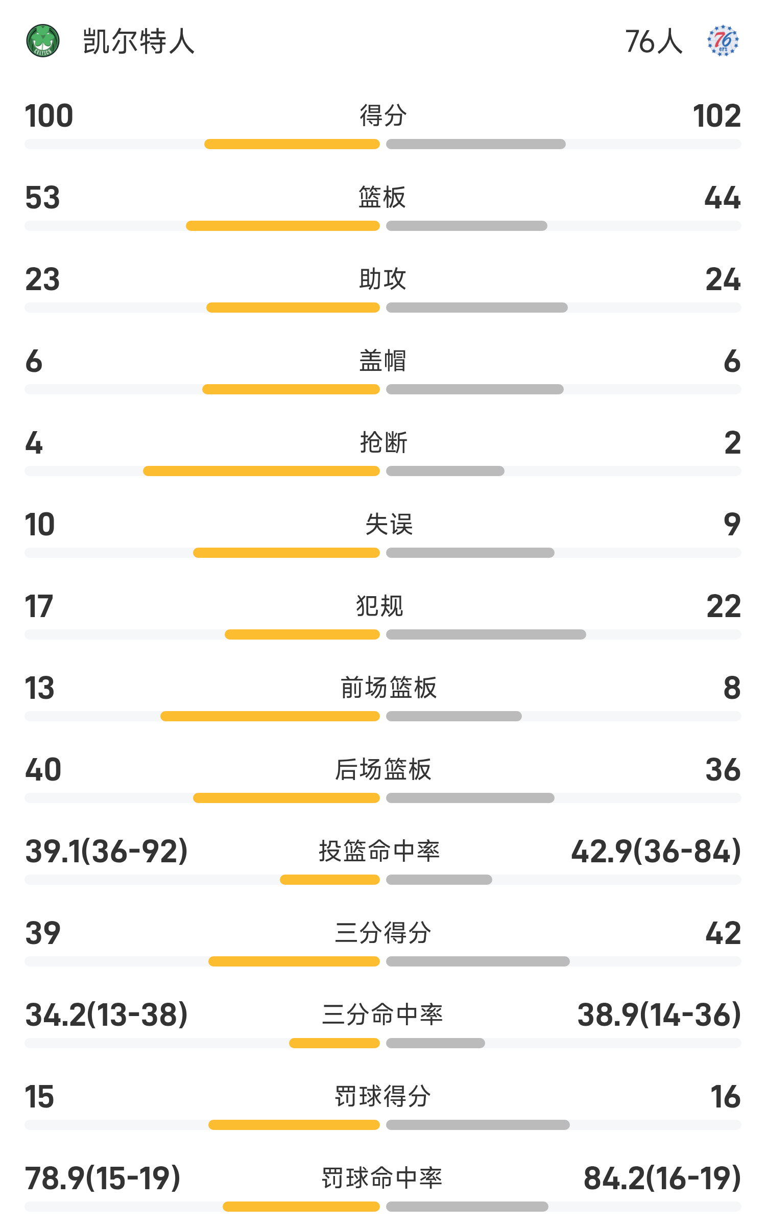 ในตอนท้ายของเกม 76ers เอาชนะ Celtics 102-100