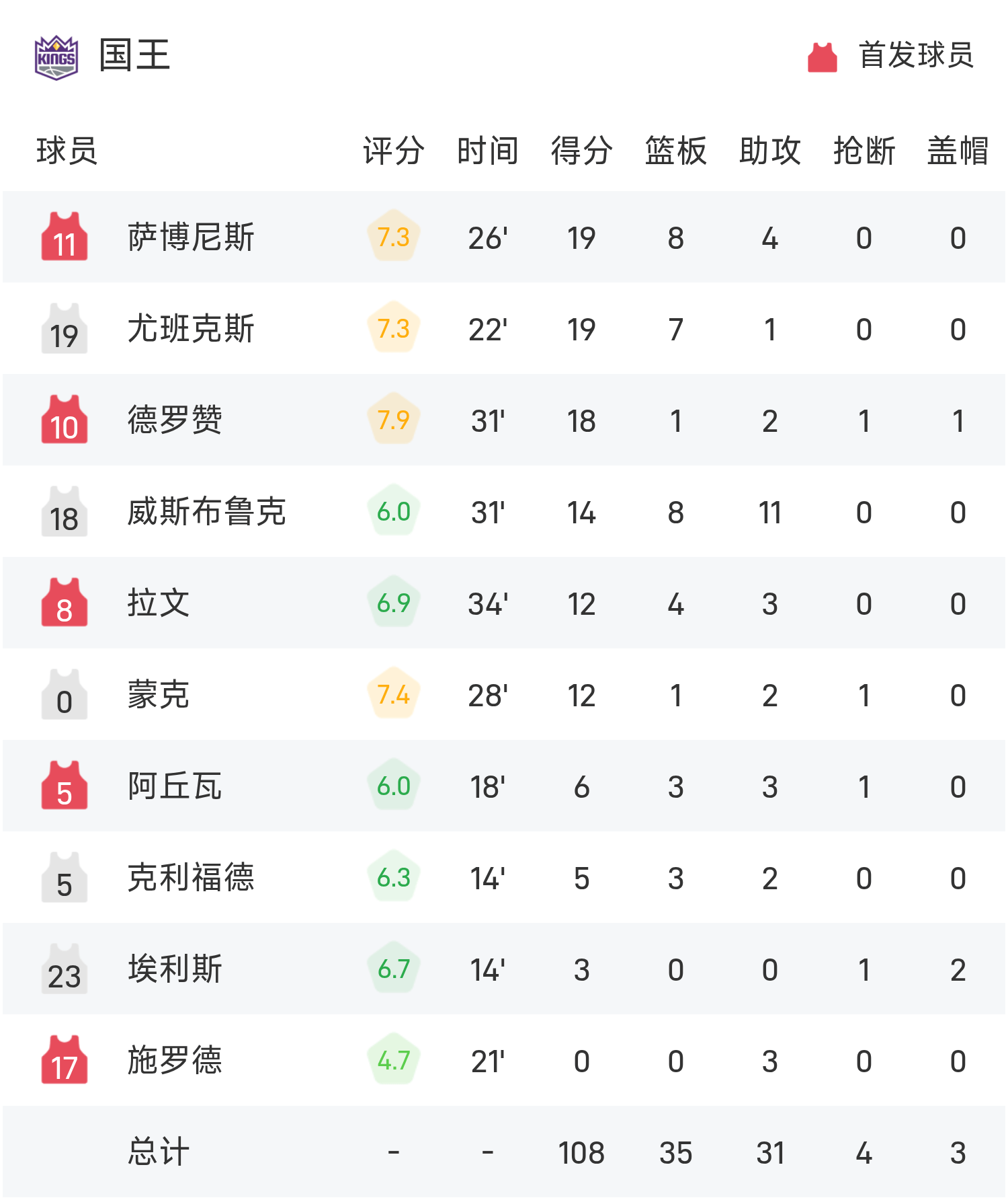 ในตอนท้ายของเกม คิงส์ แพ้ นักเก็ตส์ 108-122