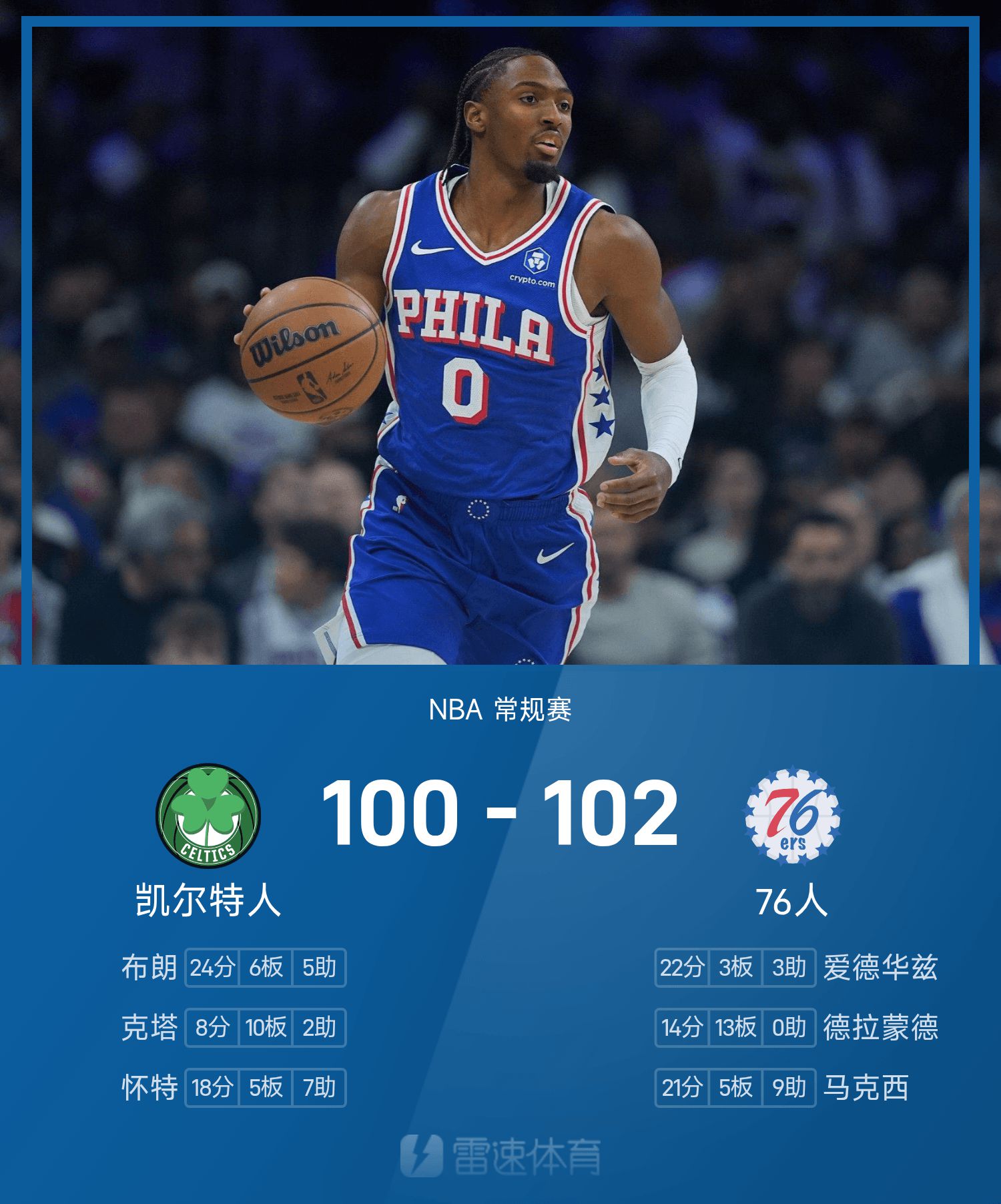 Maxi ทำคะแนน 21 แต้มและ 9 แอสซิสต์เพื่อเชื่อมโยงทีม 76ers เอาชนะ Celtics ได้ 2 แต้มอย่างหวุดหวิด