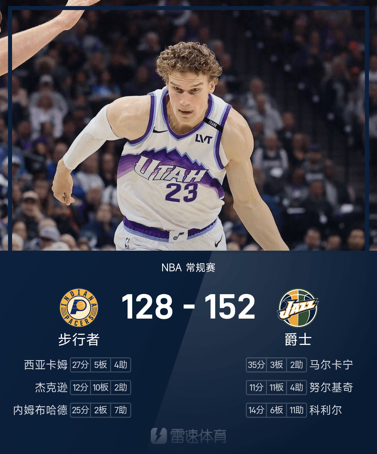 Markkanen ทำคะแนน 35 แต้มและนำทีมคว้าชัยชนะเหนือ Pacers 152 แต้ม