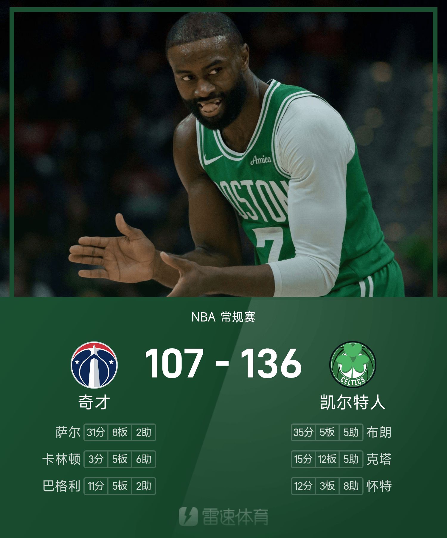 Jaylen Brown ทำคะแนน 35 แต้ม และ 6 Celtics ทำแต้มได้สองเท่าเพื่อเอาชนะ Wizards