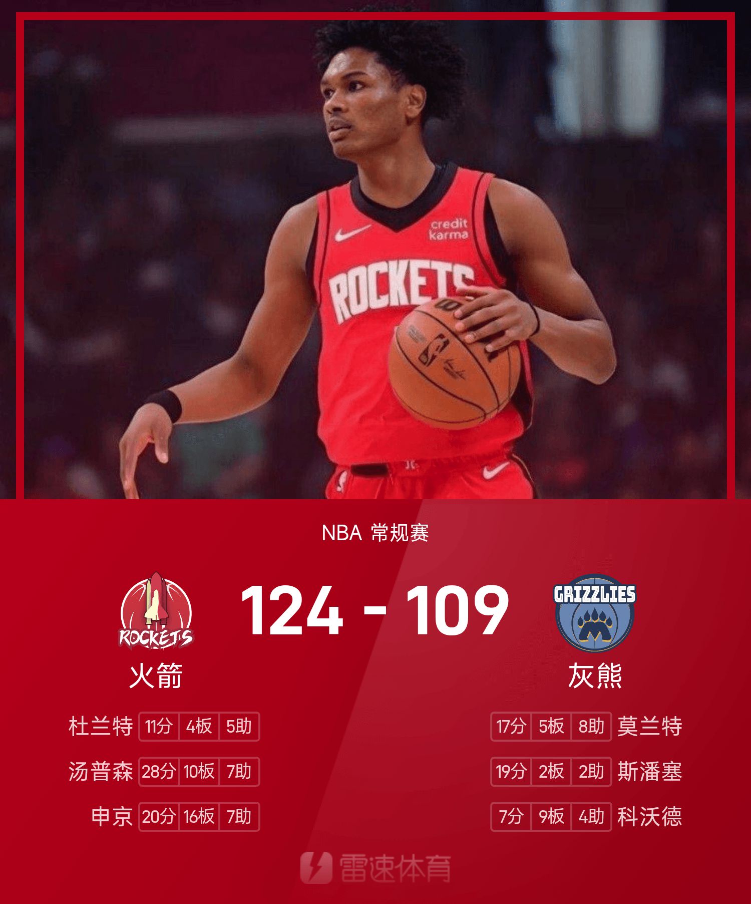 รายงานเกม NBA อาเมนมี 28 แต้ม 10 รีบาวด์ 7 แอสซิสต์ ร็อคเก็ตส์ เอาชนะ กริซลี่ส์ 124-109