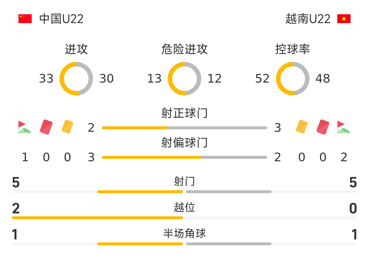 เวียดนาม U22 รายชื่อตัวจริง: 23-Gao Wenping , 4-Ruan Xiaoming, 20-Vu Yingquan (45'21-Pham Minh Phuc), 16-Ruan Riming, 3-Fan Lide, 12-Ruan Xuanbei (45'24-Nguyen Taiqiang), 8- เรือน วันหรง (86'6- เรือน ไท่ซาน), 11- คู เหวินคัง (59'17- เรือน เฟยหวง), 18- เรือน กงฟาง (45'10- หลี่ เหวินชุน), 22- ร่วน ชิงเซียน (59' 19- เหงียน หง็อก มี), 9- เหงียน ก๊วก เวียต (74'25 - เป่ย เหว่ย) เฮา)