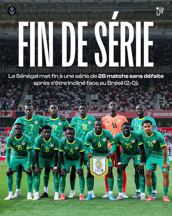 สถิติไม่แพ้ใคร 26 เกมของเซเนกัลจบลงด้วยบราซิล โดยแพ้ครั้งสุดท้ายในเดือนกันยายน 2023