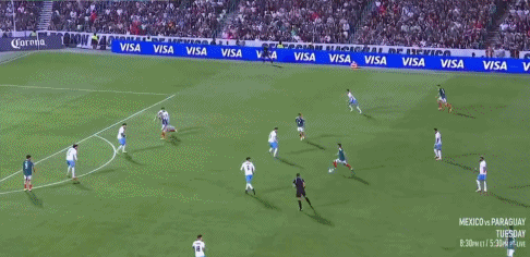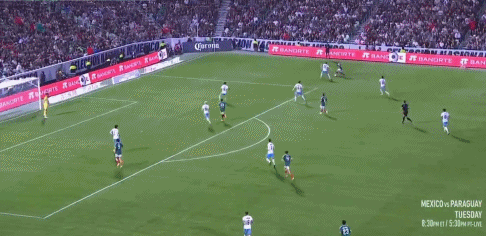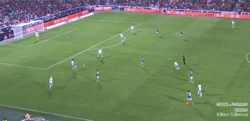 35’ อัลวาราโด้จ่ายบอลผ่าน ฆิเมเนซหันกลับมาเลี้ยงบอลแต่ไม่มีพลังและไม่ทำท่าคุกคาม