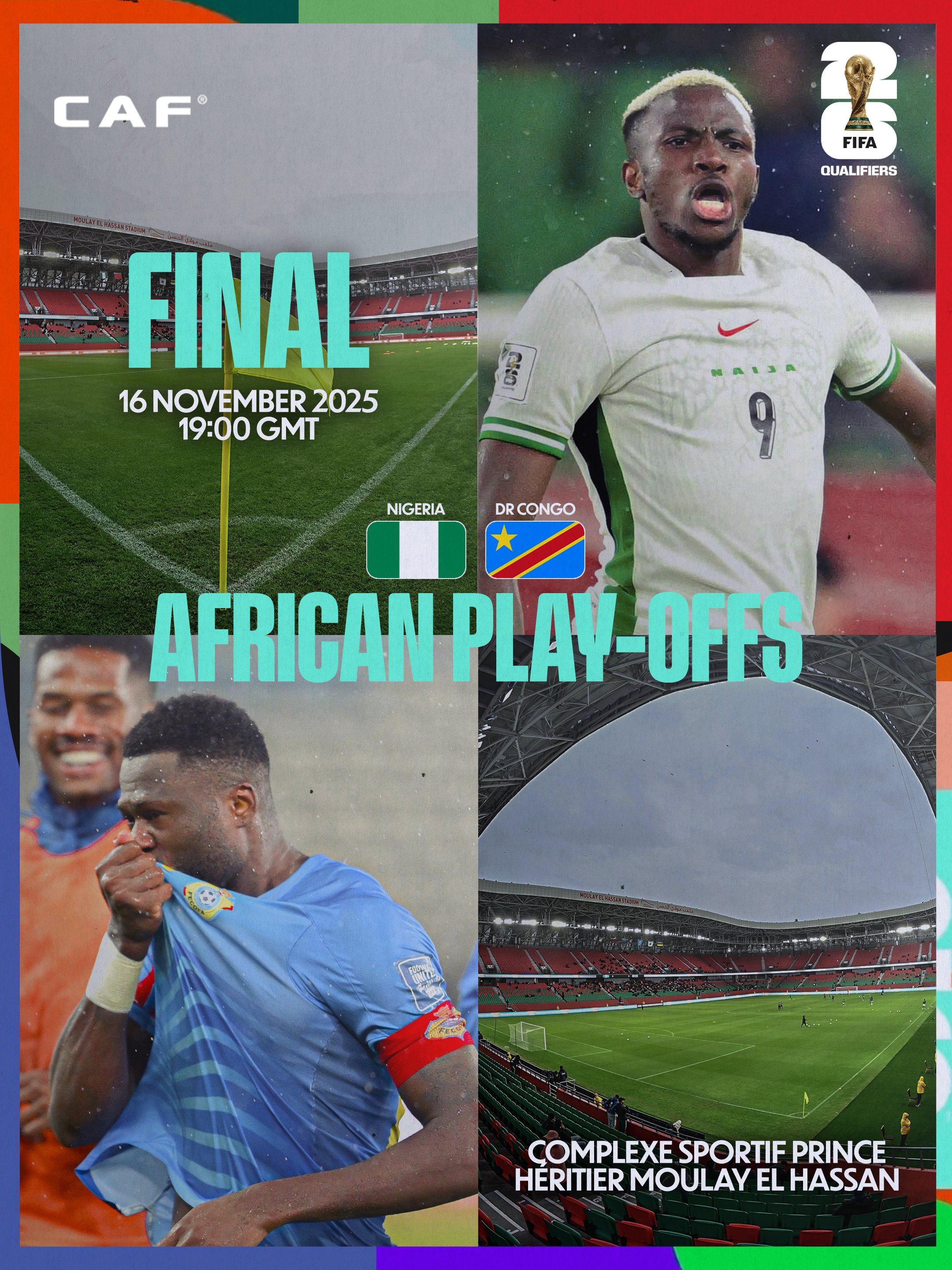 นอกเหนือจากการแข่งขันระหว่างทีมยุโรปแล้ว รอบชิงชนะเลิศของรอบเพลย์ออฟเบื้องต้นของแอฟริกาโลกจะเริ่มในเวลา 03.00 น. เช้าวันพรุ่งนี้ตามเวลาปักกิ่ง รอบชิงชนะเลิศเป็นรูปแบบรอบเดียว และจะยังคงเล่นต่อที่สนามกลางในโมร็อกโก ผู้ชนะระหว่างไนจีเรียและสาธารณรัฐประชาธิปไตยคองโกจะได้ผ่านเข้ารอบเพลย์ออฟข้ามทวีปและแข่งขันกับคู่ต่อสู้จากทวีปอื่นต่อไปเพื่อผ่านเข้ารอบฟุตบอลโลก