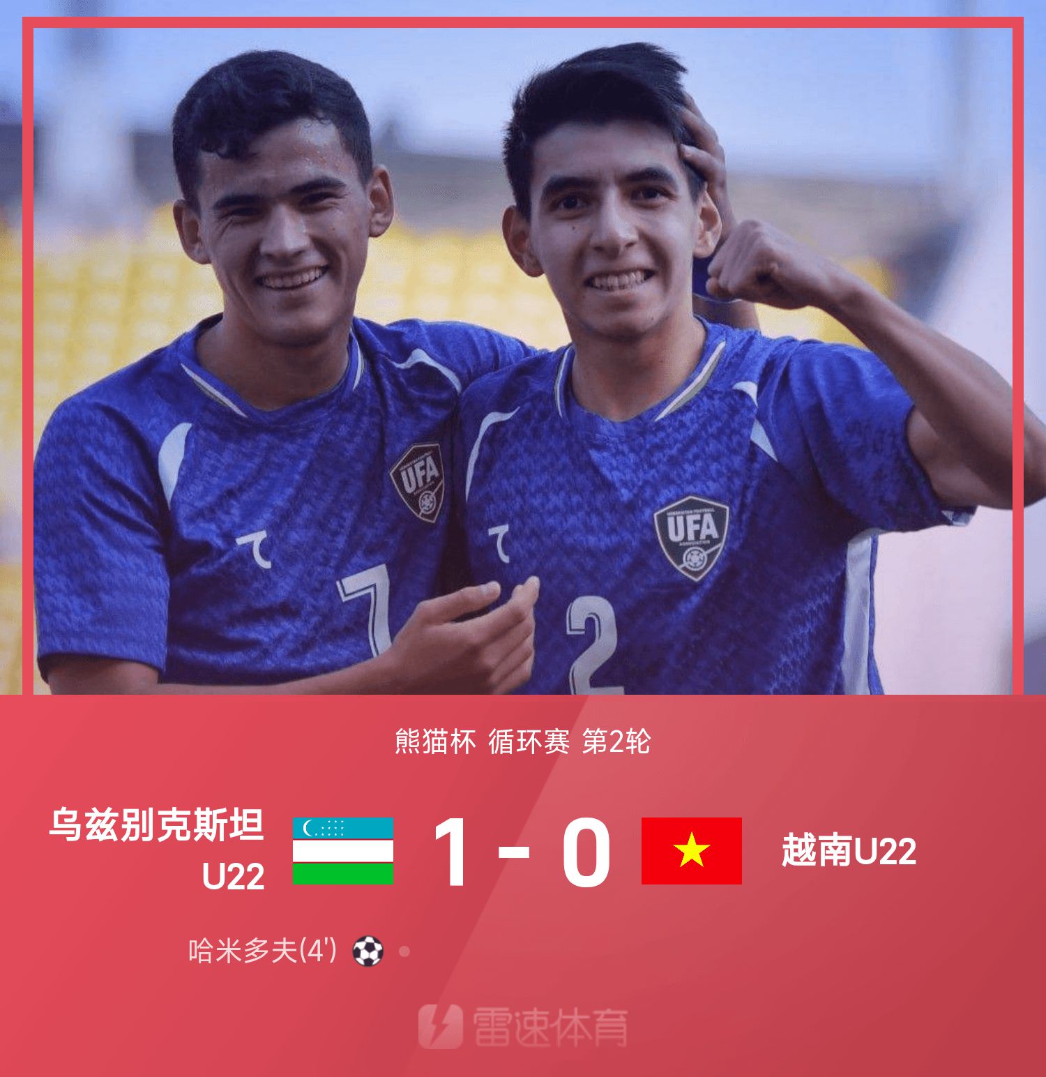 6686 ข่าวกีฬาวันที่ 15 พฤศจิกายน ในรอบที่สองของการแข่งขันรอบที่สองของ Panda Cup ปี 2025 อุซเบกิสถาน U22 เอาชนะเวียดนาม U22 1-0 ตลอดทั้งเกม คามิดอฟทำประตูได้ ปัจจุบันมีเพียงทีมจีน U22 เท่านั้นที่ยังไม่ได้แชมป์แพนด้าคัพ ลีกเยาวชนแห่งชาติ แพ้ เวียดนาม 0-1 ในเกมแรก คืนนี้เวลา 19:35 น. ลีกเยาวชนแห่งชาติของเกาหลีใต้จะเผชิญความท้าทาย