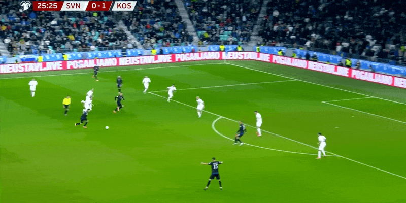 11’ กองหลังโคโซโวทำพลาดในการเคลียร์บอล และวิโปตนิกก็เซฟลูกยิงได้