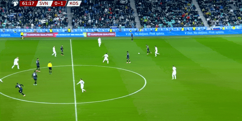62’ แนวรับของสโลวีเนียเปิดกว้าง และ Oblak ก็เซฟอย่างกล้าหาญจาก Muslija