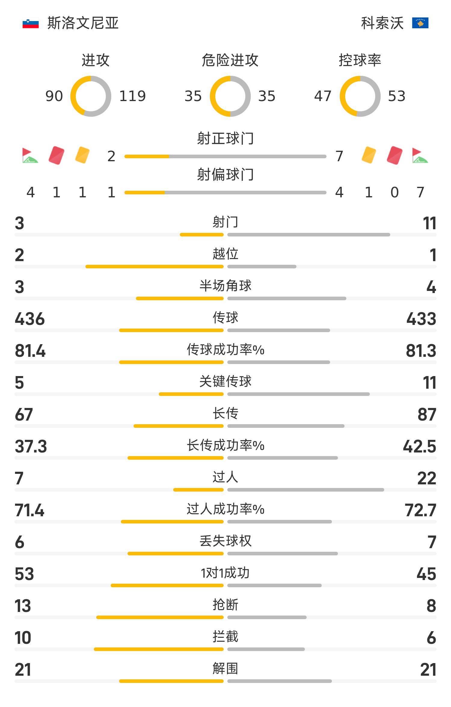 รายชื่อผู้เล่นตัวจริงของสโลวีเนีย: 1-Oblak, 23-Brekalo, 6-Bjork, 21-Drukusic, 13-Janza (46'20-Stajanovic), 5-Stankovic (46'4-Petrovic), 10-Elsnik, 2-คานิไคนิก, 19-ฮอล วัตต์ (82'7-วิลบิค), 9-สโปลาร์ (66'14-กราดิซาร์), 18-เวบอตนิค (76'15-สตูร์ม)