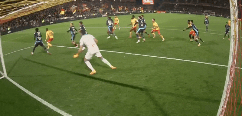 90+2' ซานกาเรเผชิญหน้ากับผู้รักษาประตูเพียงลำพังและถูกสกัดกั้น และเลนส์ก็พลาดโอกาสที่จะผนึกชัยชนะไว้ล่วงหน้า