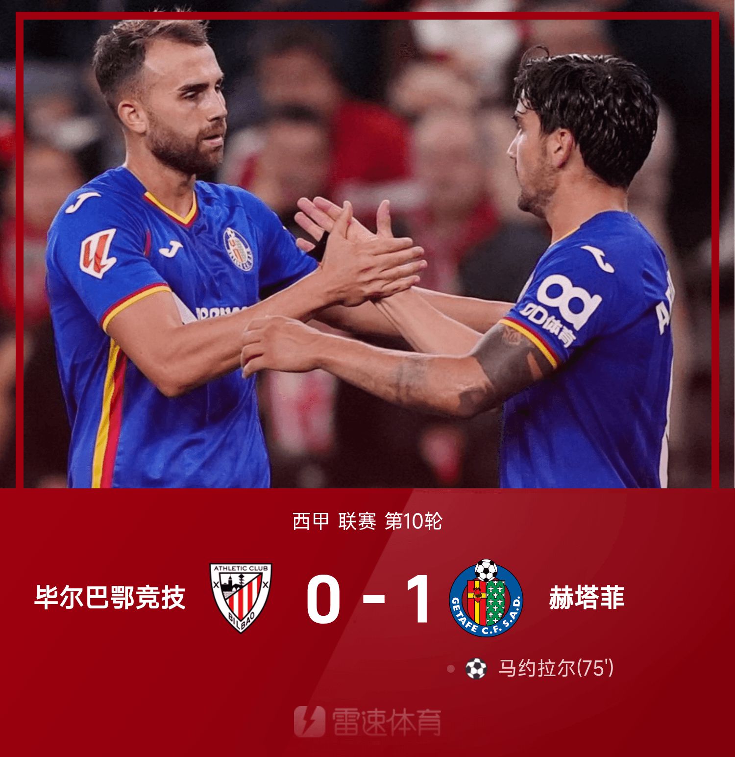 รายงานผลการแข่งขันลาลีกา มายรอล ชนะนัดเดียว เกตาเฟ่ เอาชนะ บิเบา 1-0
