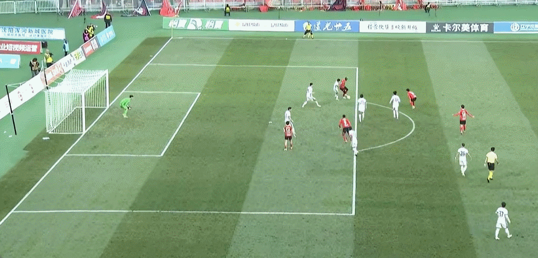 57' เจีย ป๋อหยาน เจอบอลใสนอกเขตสามวินาทีแล้ววอลเลย์บอลเข้ามุมไกล หลิว เว่ยกั๋วล้มลงกับพื้นและเซฟบอลไว้ได้