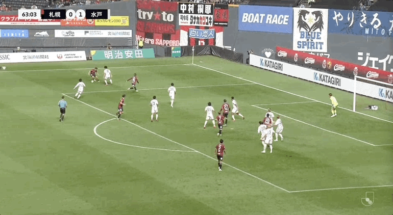 53' ซัปโปโรเคลื่อนบอลตามบอลไป แต่ยังคงอดทนผ่านบอลลงสนาม