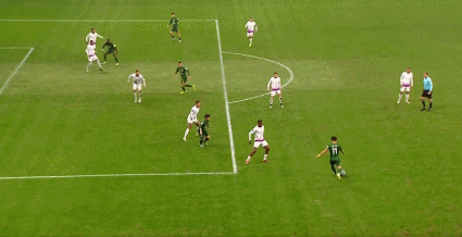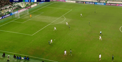 77' เซร์จินโญ่ได้บอลหน้าโซนสามวินาที ยิงจากด้านนอกใส่กองหลังสองคน และบอลพลาดเสา