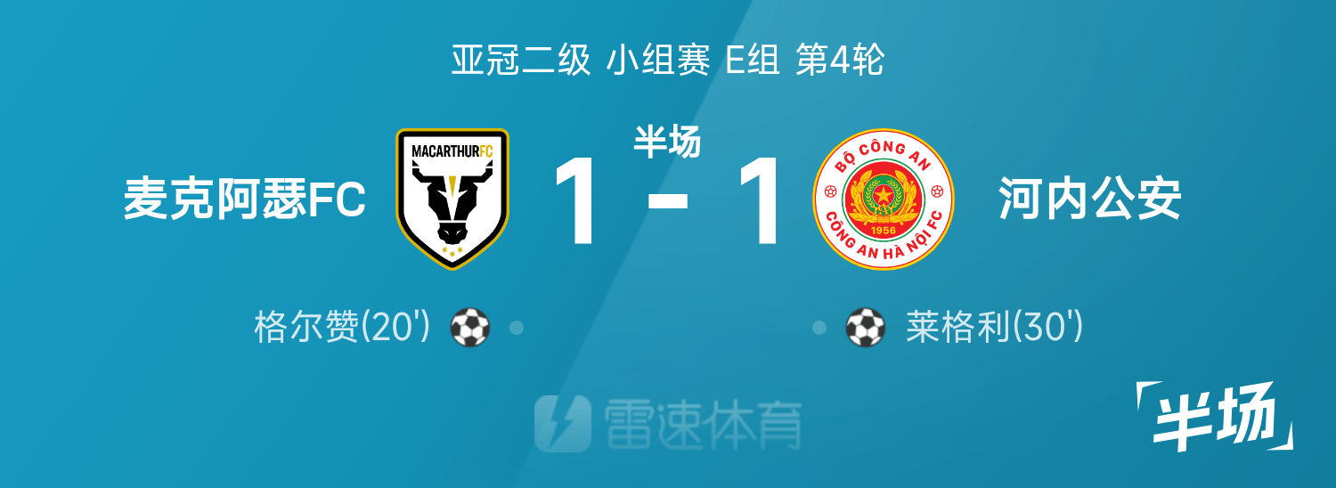 AFC Champions League ระดับ 2 พักครึ่ง: Gerzan ทำประตู, Legli ตีเสมอ, Macarthur 1-1 ฮานอย