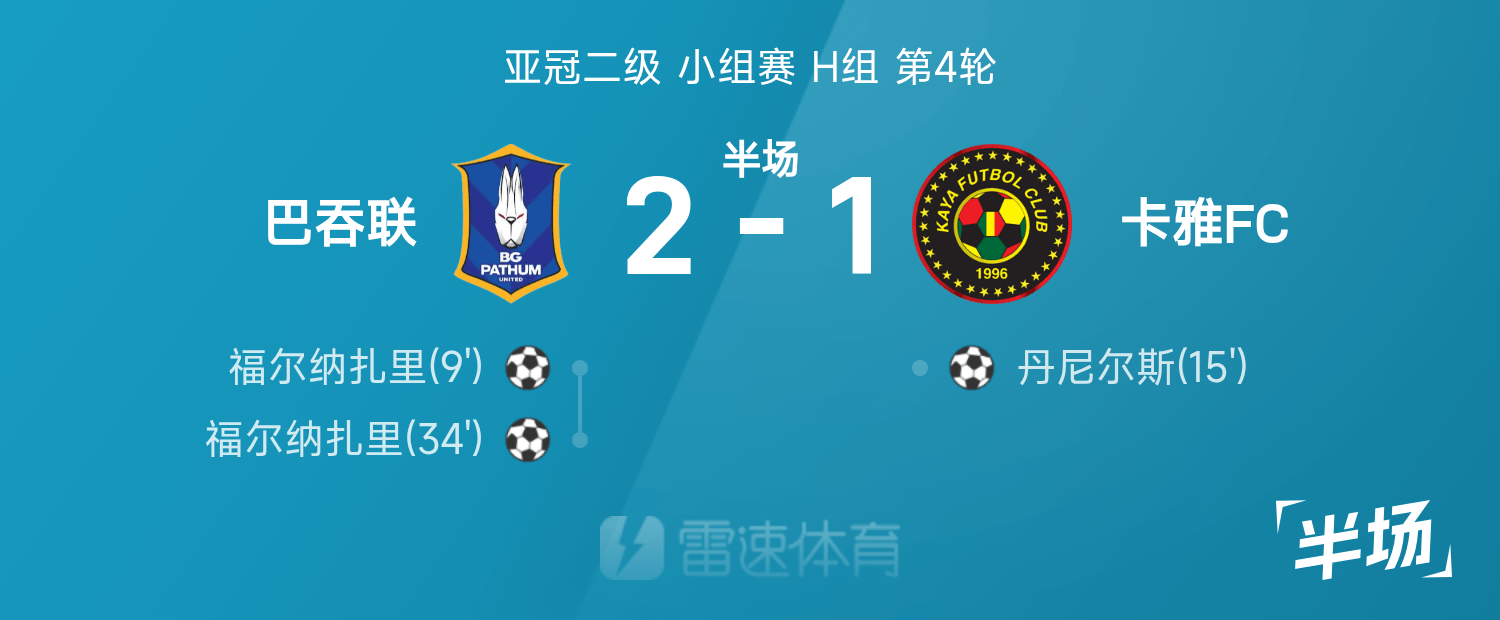 เอเอฟซี แชมเปียนส์ลีก ระดับ 2 พักครึ่ง : ฟอร์นาซารี คู่, ปทุม ยูไนเต็ด ชั่วคราว 2-1 คาย่า เอฟซี
