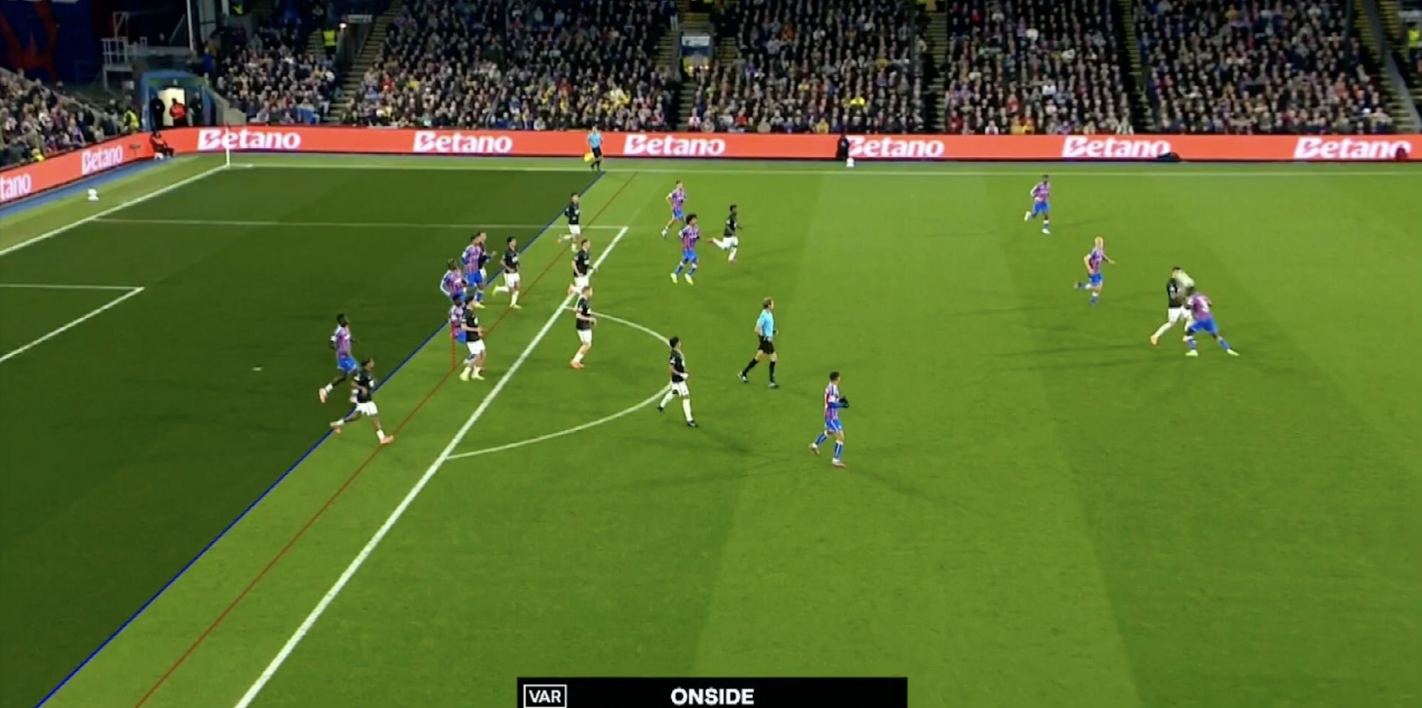 รายชื่อผู้เล่นตัวจริงของคริสตัล พาเลซ: 1-เฮนเดอร์สัน, 6-กีย์, 5-ลาครัวซ์, 26-ริชาร์ดส, 19-ฮิวจ์ส, 8-เลอร์มา, 7-ซาร์, 2-มูโนซ, 3 -มิทเชล, 10-ปิโน, 14-มัตเตต้า