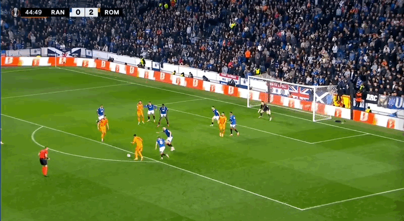 พักครึ่งยูโรป้าลีก: ซูเล่และเปเญกรินี่ทำประตู, เรนเจอร์ส 0-2 โรม่า