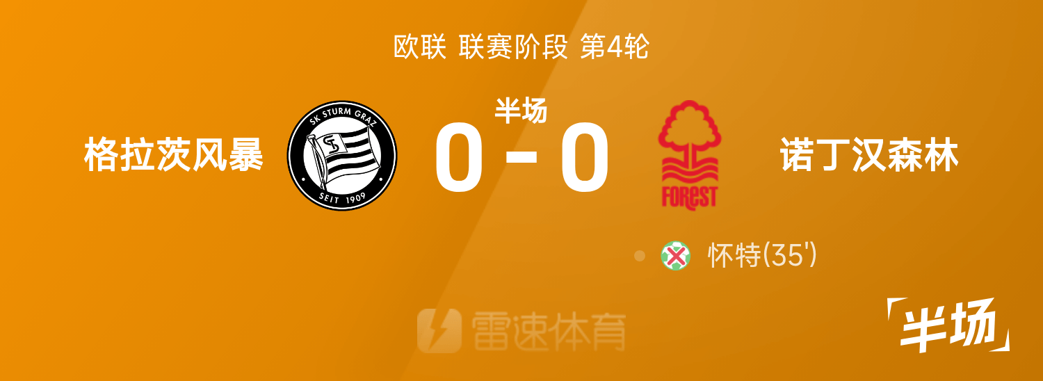 พักครึ่งยูโรปาลีก ไวท์พลาดแต้ม มาโลนเสียประตู กราซ สตอร์ม 0-0 น็อตติ้งแฮม ฟอเรสต์